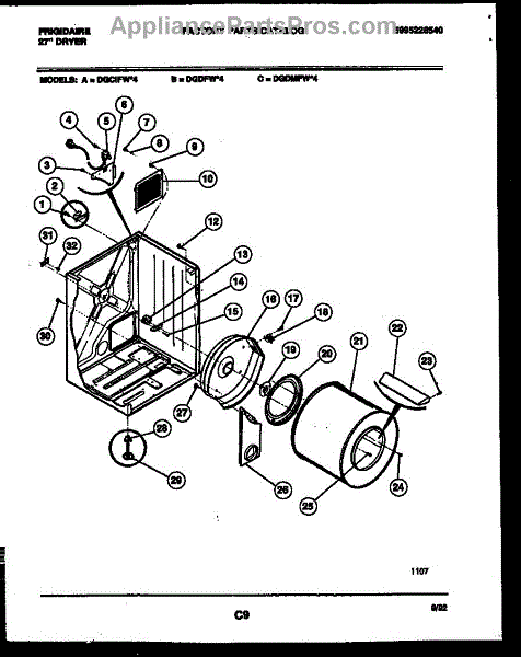 Parts for Frigidaire DGDFH4: 02 - Cabinet And Component Parts
