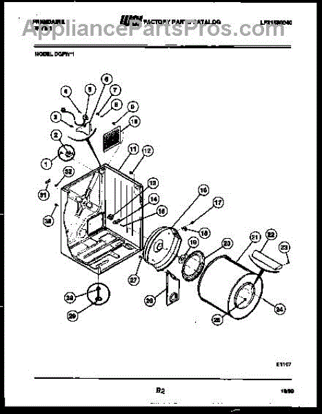 Parts for Frigidaire DGFW1: 02 - Cabinet And Component Parts
