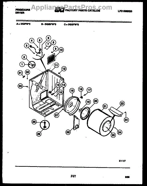 Parts for Frigidaire DGIFW0: 02 - Cabinet And Component Parts