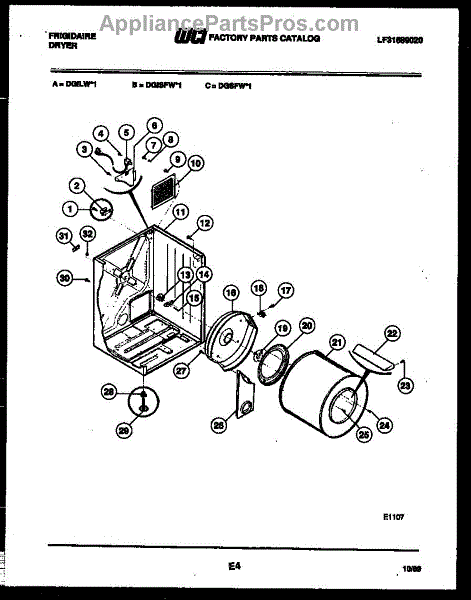Parts for Frigidaire DGISFW1: 02 - Cabinet And Component Parts
