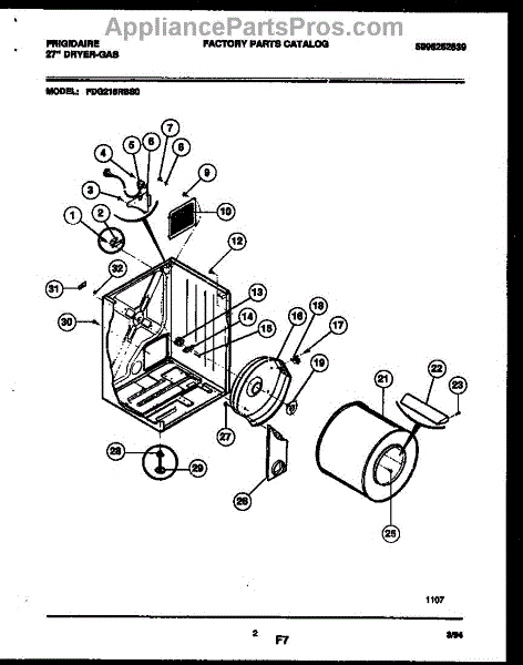 The Drum Bearing Bracket is an OEM replacement part for Frigidaire dryers. It holds and supports the drum bearing, which allows the dryer drum to spin smoothly during the tumbling and drying cycle. Causes of failure can be cracking or breaking of the bracket over time due to constant use and stress. Improper installation that puts strain on the bracket may also lead to issues. Symptoms of a bad drum bearing bracket include: