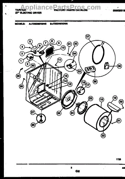 Parts for Frigidaire TDE336RBD0: 02 - Cabinet And Component Parts