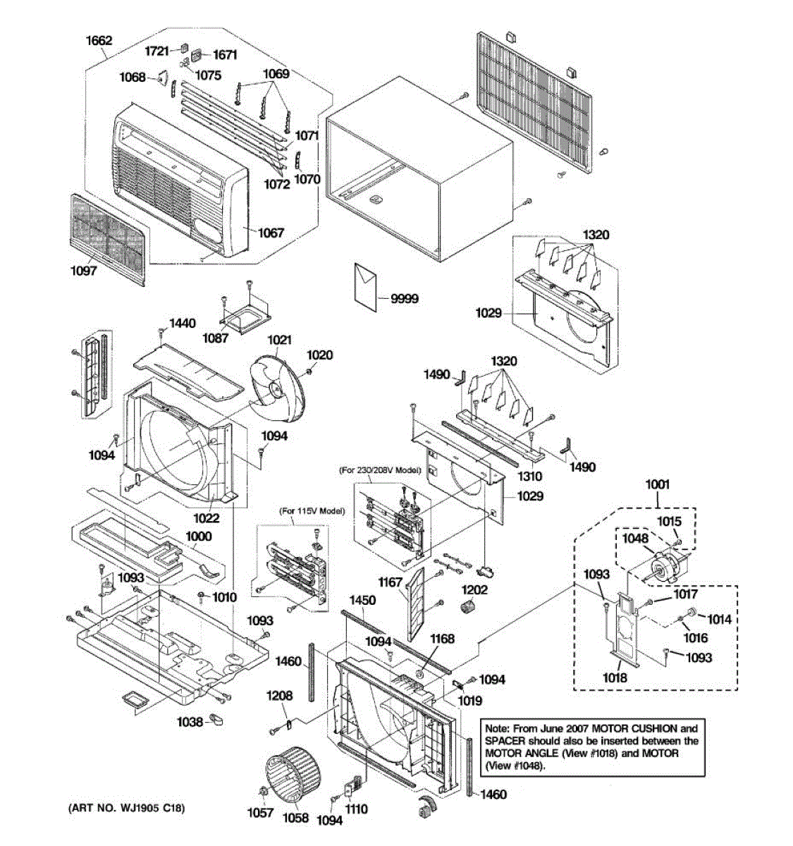 Replace your air conditioner's front panel assembly if the original is cracked, broken, or damaged. This cosmetic panel covers the front of the unit.