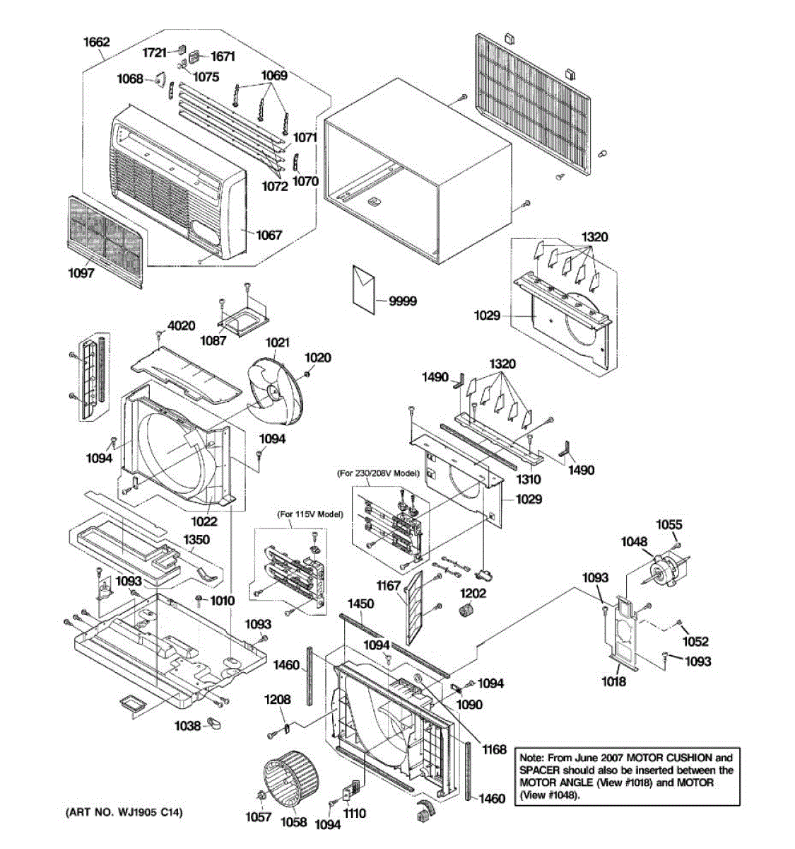 Replace your air conditioner's front panel assembly if the original is cracked, broken, or damaged. This cosmetic panel covers the front of the unit.