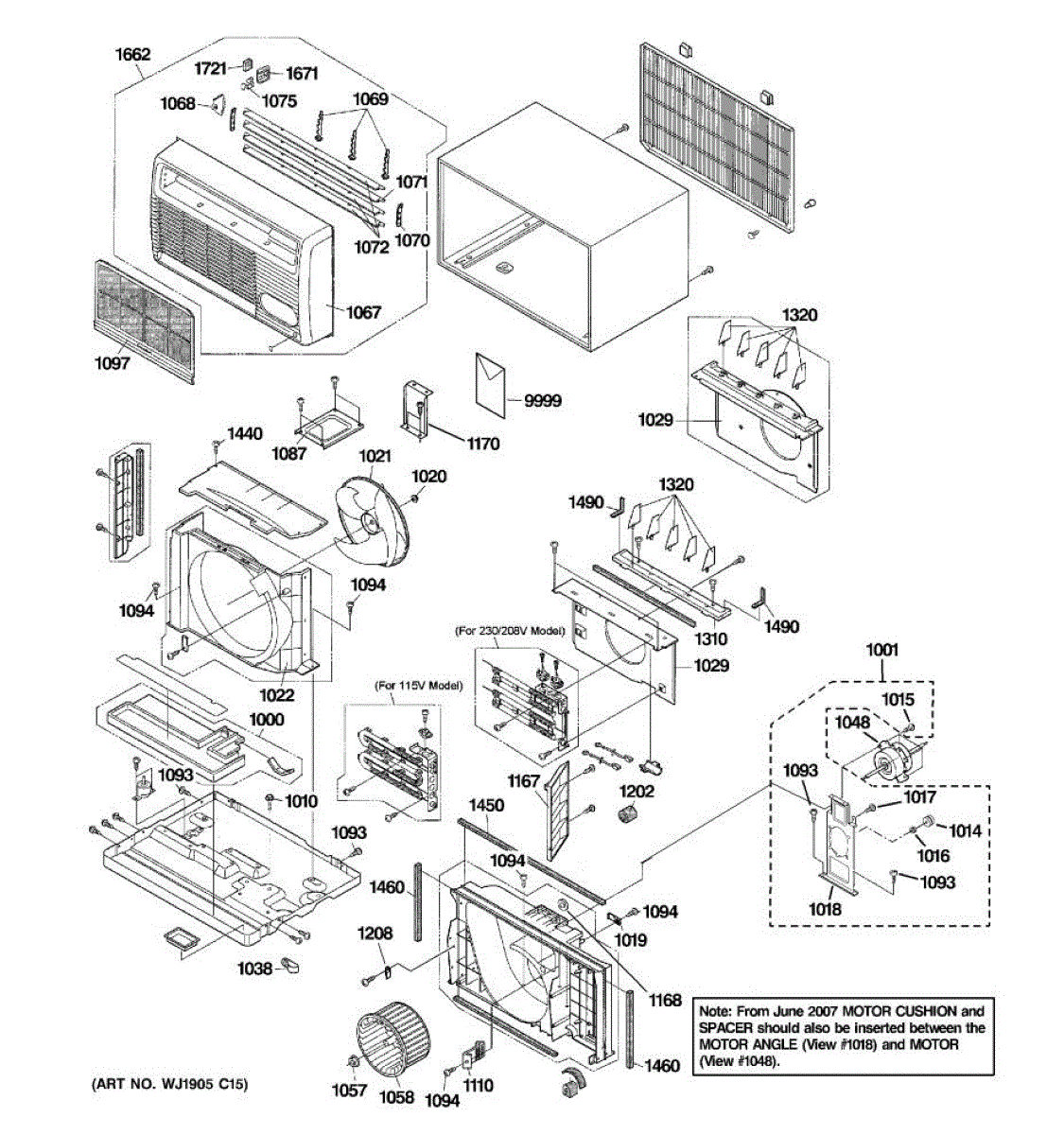 Replace your air conditioner's front panel assembly if the original is cracked, broken, or damaged. This cosmetic panel covers the front of the unit.