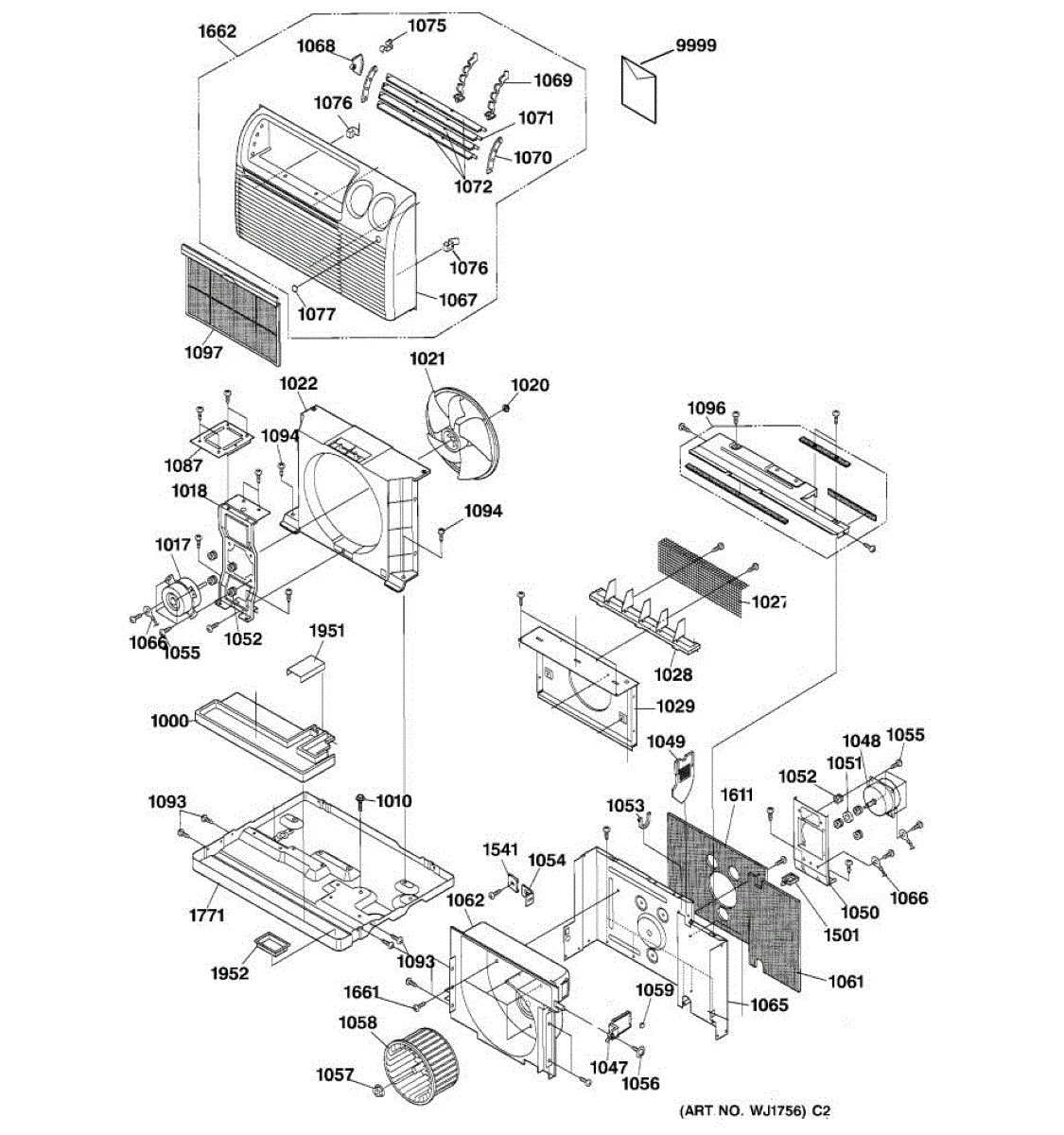 Replacement front panel assembly for air conditioner units. Restores the exterior appearance when the original panel is cracked, broken, or damaged.
