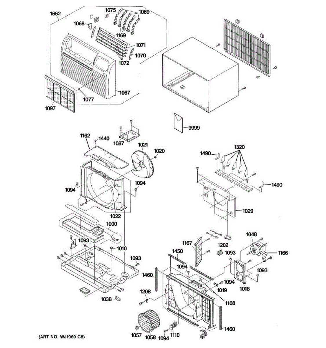 Protective housing cover for air conditioner condenser unit. Installs around exterior coil assembly. Replace if cracked, broken, or missing.