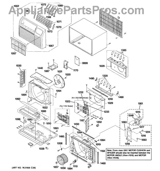 Parts for Ge AJES09DCBM2: 01 - Cabinet & Components Parts