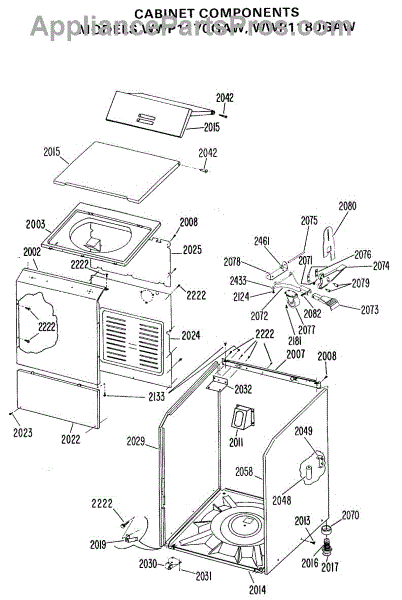 Parts for Ge WWP1170GAW: 02 - Cabinet Components Parts