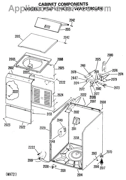Parts for Ge WWP1170GDE: 02 - Cabinet Components Parts