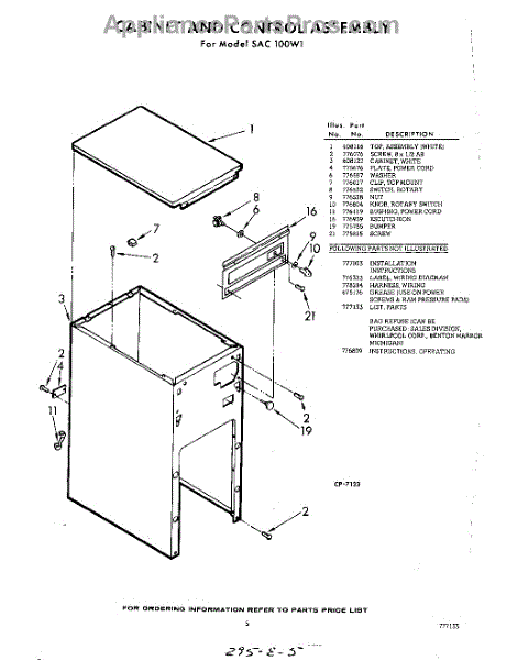 Parts for Whirlpool SAC100W1: 05 - Cabinet And Control, Lit / Optional Parts