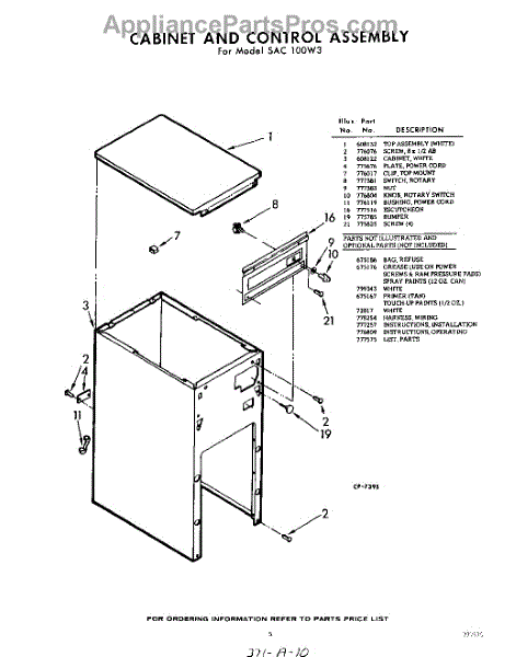 Parts for Whirlpool SAC100W3: 05 - Cabinet And Control , Lit / Optional Parts