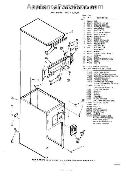 Parts for Whirlpool SFC450000: 05 - Cabinet And Control , Lit / Optional Parts