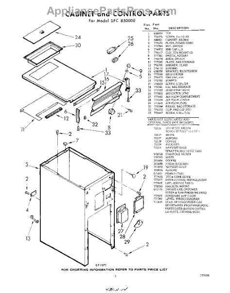 Parts for Whirlpool SFC850000: 05 - Cabinet And Control , Lit / Optional Parts