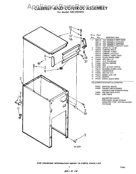 Parts for Whirlpool SXC200W0: 05 - Cabinet And Control , Lit / Optional Parts