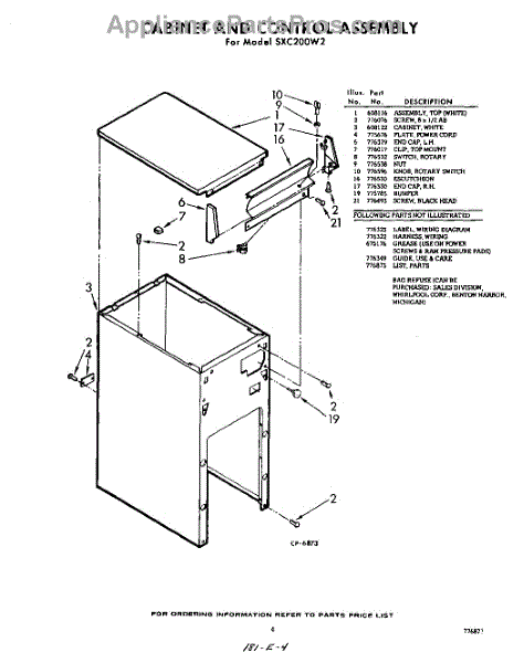 Parts for Whirlpool SXC200W2: 04 - Cabinet And Control , Lit / Optional Parts