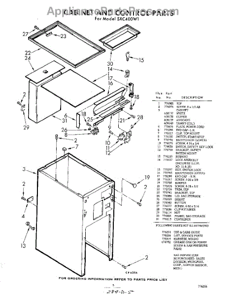 Parts for Whirlpool SXC400W1: 05 - Cabinet Control , Lit / Optional Parts