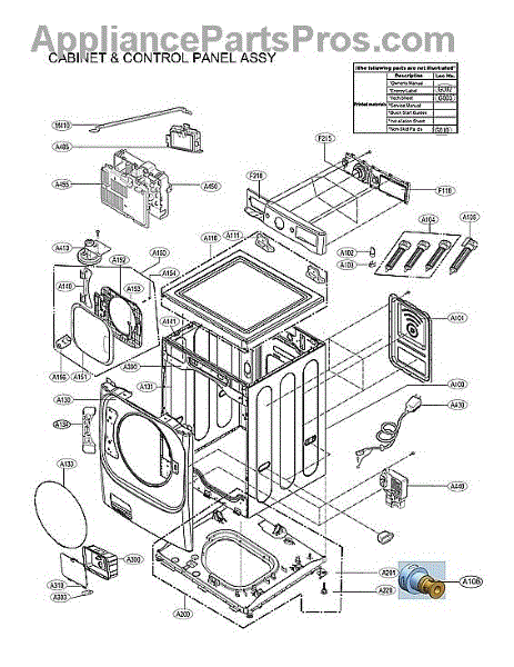 This casing fits LG top load models as well as some Kenmore configurations.