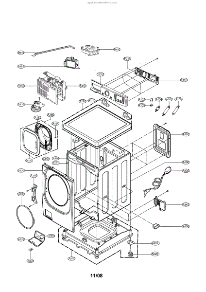 This outer housing case protects internal components and provides the appliance's external structure for reliable operation and a finished appearance. It helps keep parts aligned and shields electronics and mechanisms from debris and damage. What it does: