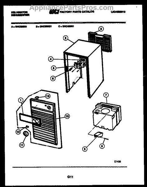 Parts for Frigidaire DHC250G1: 02 - Cabinet And Control Parts