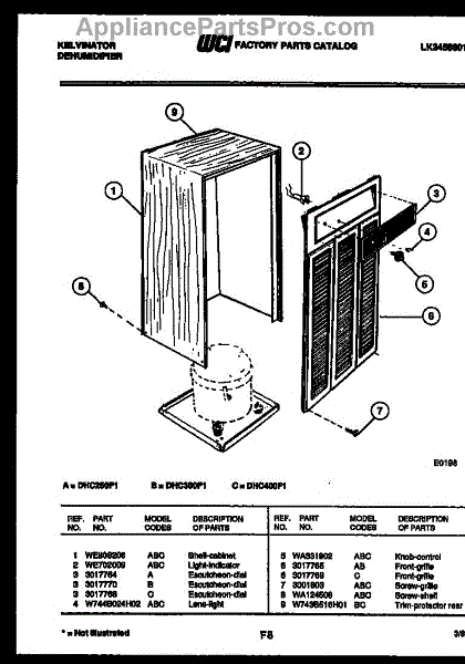 Parts for Frigidaire DHC300F1: 02 - Cabinet And Control Parts