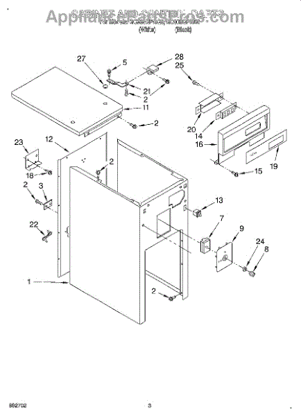 This sheet-metal pan-head screw secures appliance panels, brackets, and components to the cabinet or frame. Replacing a missing or damaged screw restores a tight fit and helps stop rattles, misalignment, and loosening.