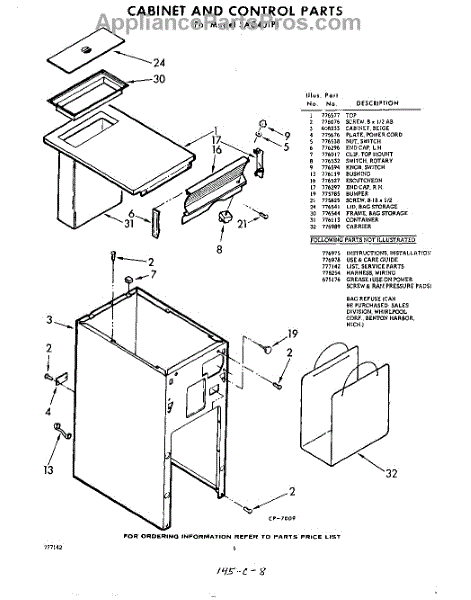 Parts for Whirlpool SAC401P1: 05 - Cabinet And Control Parts