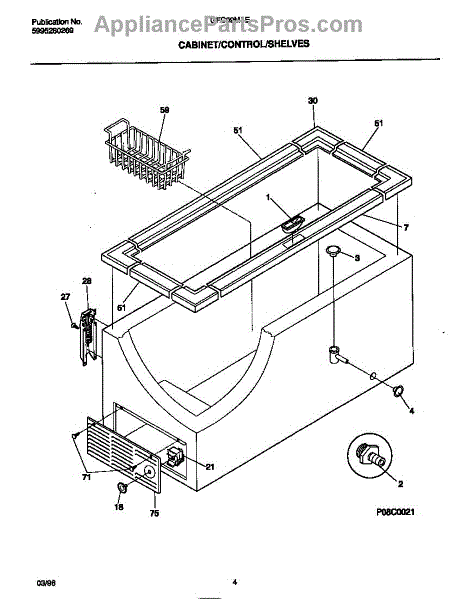 Parts for Frigidaire GFC09M3EW0: 03 - Cabinet / Control / Shelves Parts