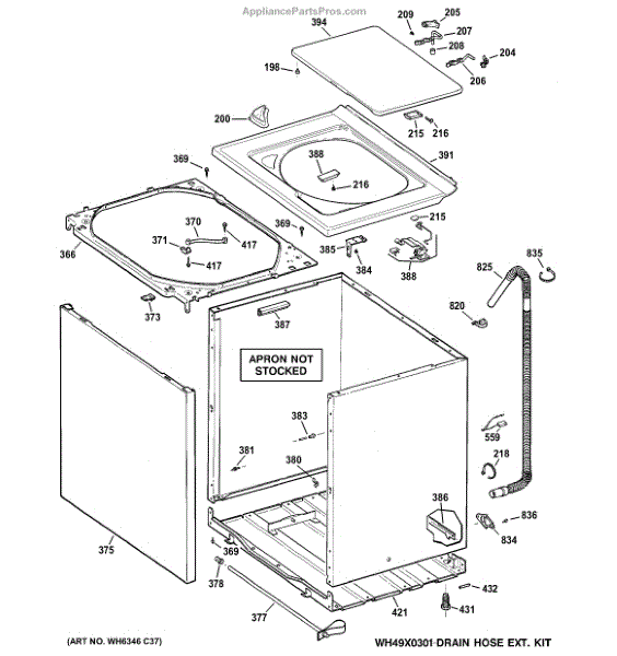 The Washer Top is an OEM part for GE washers. It is the upper panel that covers the internal components of the washing machine and provides a flat surface for loading and unloading laundry.
