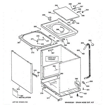 The Washer Top is an OEM part for GE washers. It is the upper panel that covers the internal components of the washing machine and provides a flat surface for loading and unloading laundry.