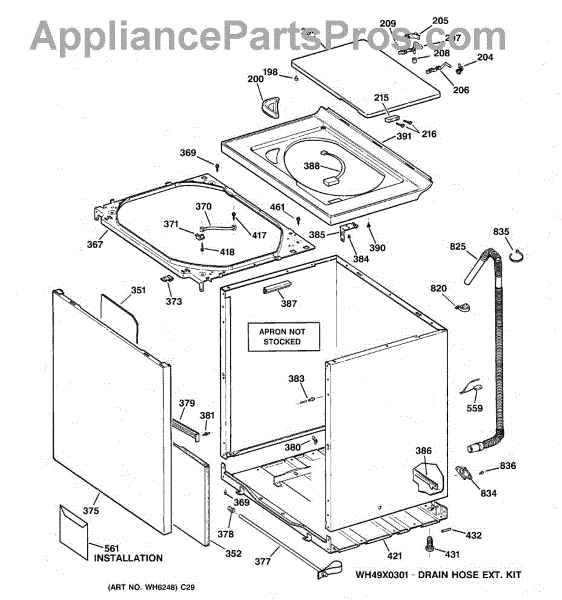 Note: For the entire drain hose, use part number WH41X10096.