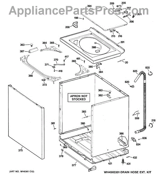 The Washer Top is an OEM part for GE washers. It is the upper panel that covers the internal components of the washing machine and provides a flat surface for loading and unloading laundry.