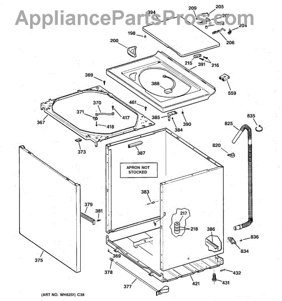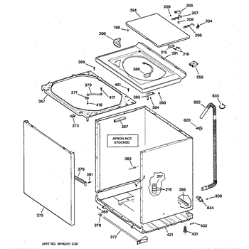 The Washer Top is an OEM part for GE washers. It is the upper panel that covers the internal components of the washing machine and provides a flat surface for loading and unloading laundry.