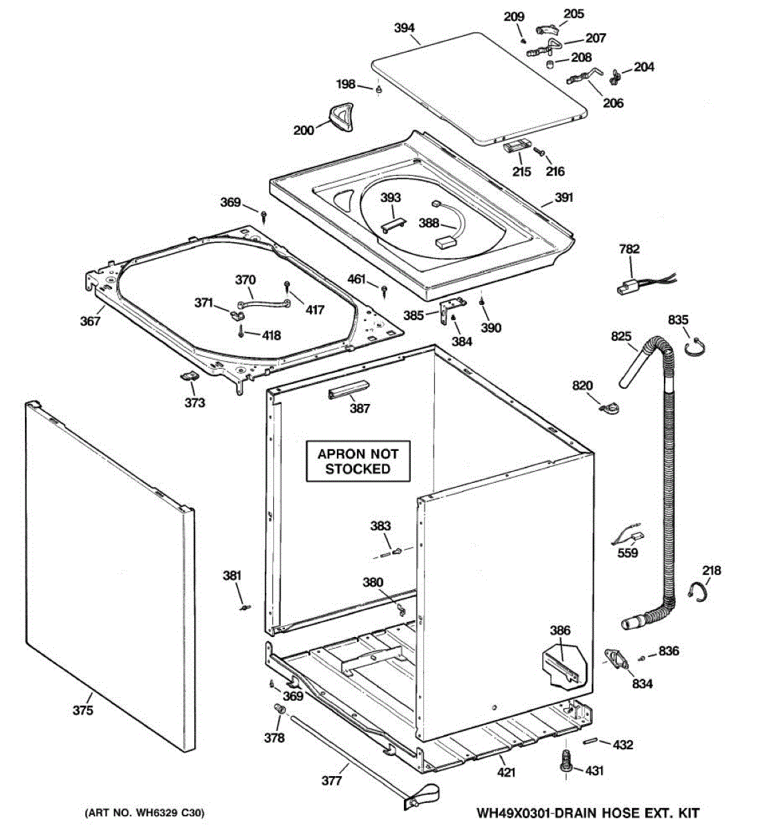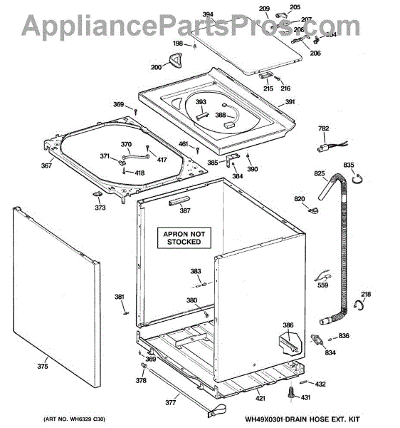 The Washer Top is an OEM part for GE washers. It is the upper panel that covers the internal components of the washing machine and provides a flat surface for loading and unloading laundry.