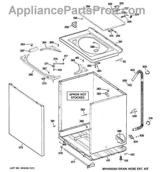 Note: For the entire drain hose, use part number WH41X10096.