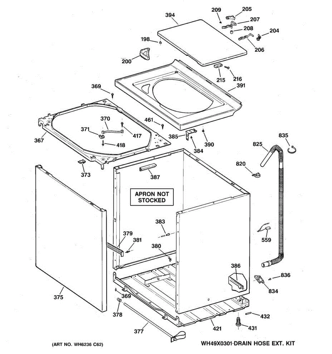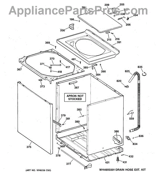 The Washer Top is an OEM part for GE washers. It is the upper panel that covers the internal components of the washing machine and provides a flat surface for loading and unloading laundry.