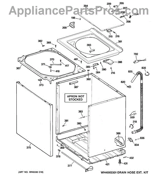 The Washer Top is an OEM part for GE washers. It is the upper panel that covers the internal components of the washing machine and provides a flat surface for loading and unloading laundry.