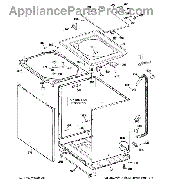 The Washer Top is an OEM part for GE washers. It is the upper panel that covers the internal components of the washing machine and provides a flat surface for loading and unloading laundry.