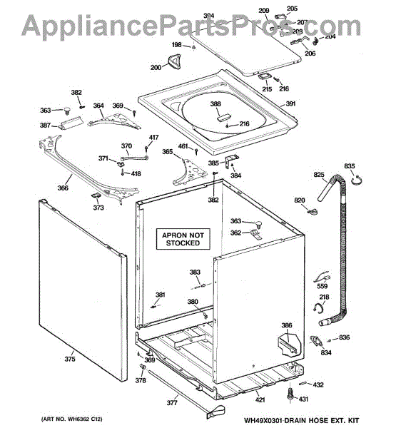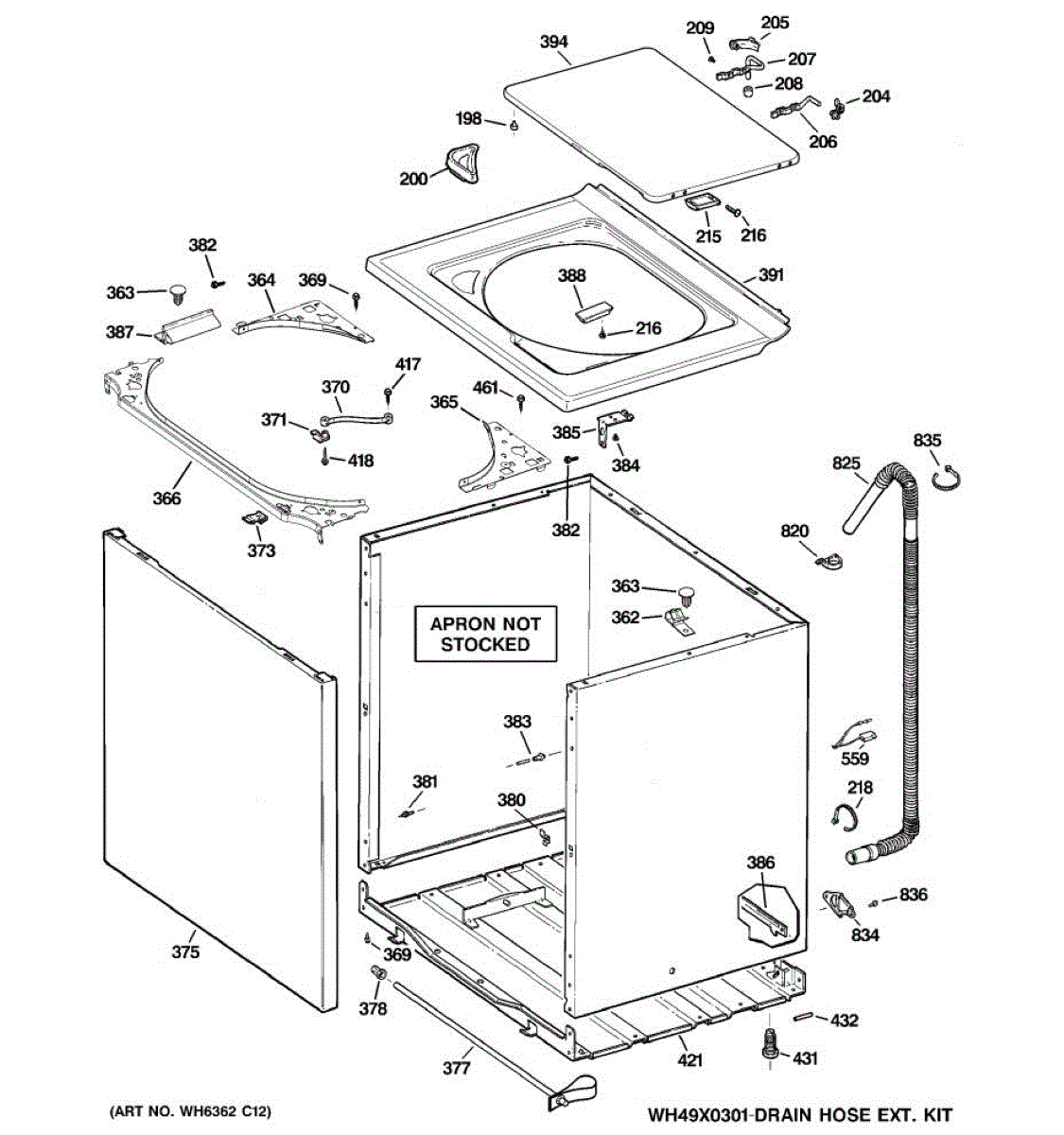 The Washer Top is an OEM part for GE washers. It is the upper panel that covers the internal components of the washing machine and provides a flat surface for loading and unloading laundry.
