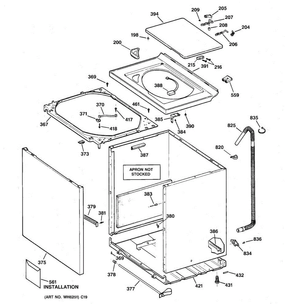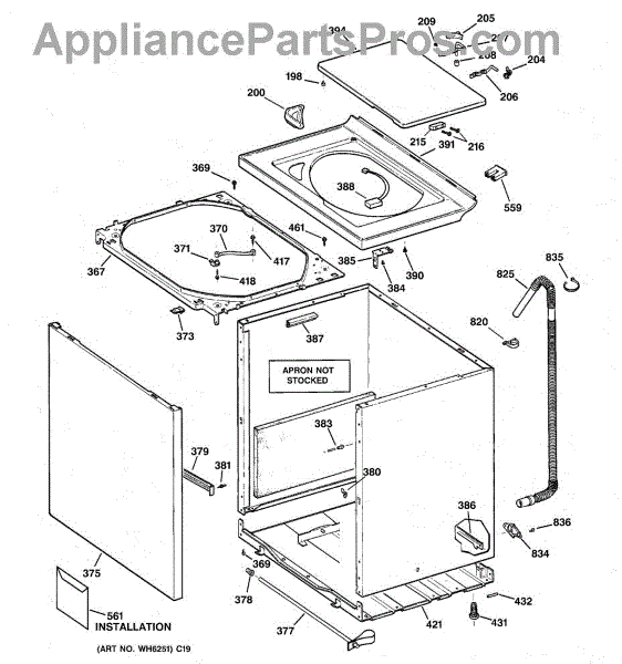 The Washer Top is an OEM part for GE washers. It is the upper panel that covers the internal components of the washing machine and provides a flat surface for loading and unloading laundry.