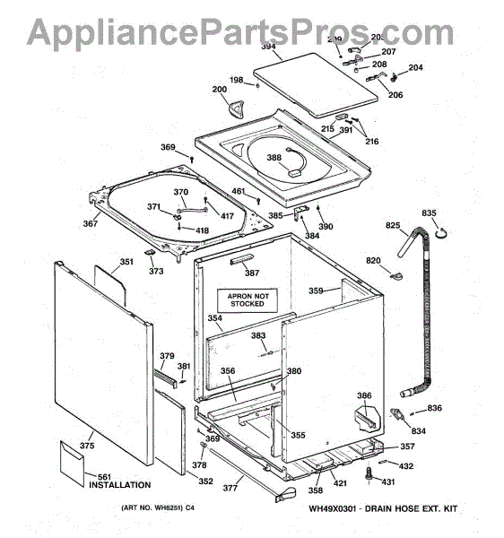 Note: For the entire drain hose, use part number WH41X10096.