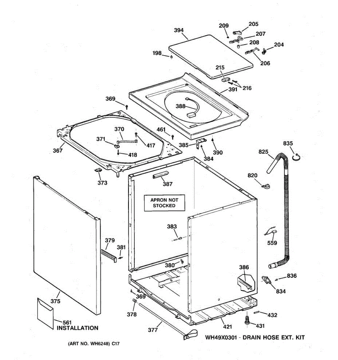 The Lid Assembly is an OEM part for GE washing machines. This part is the lid of the washer. It is essential for securely covering the washer drum, preventing water from splashing out during the wash cycle, and allowing safe operation by ensuring the washer does not run with the lid open. Causes of a bad lid assembly can include general wear and tear, physical damage from heavy loads or impacts, or issues with the hinges or latch mechanisms. Symptoms of a bad lid assembly include: