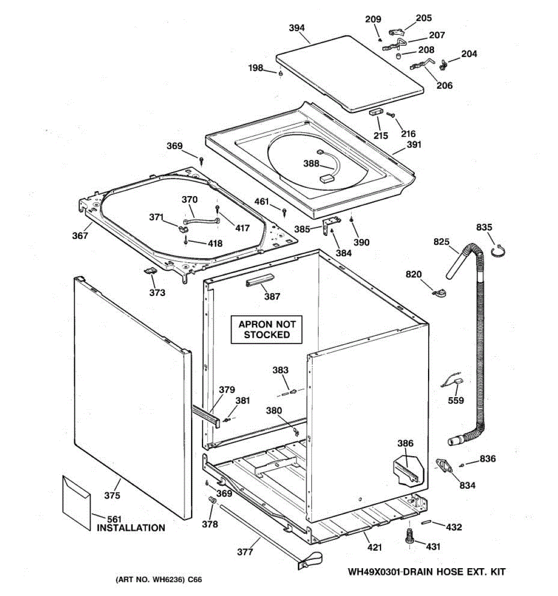 The Lid Assembly is an OEM part for GE washing machines. This part is the lid of the washer. It is essential for securely covering the washer drum, preventing water from splashing out during the wash cycle, and allowing safe operation by ensuring the washer does not run with the lid open. Causes of a bad lid assembly can include general wear and tear, physical damage from heavy loads or impacts, or issues with the hinges or latch mechanisms. Symptoms of a bad lid assembly include:
