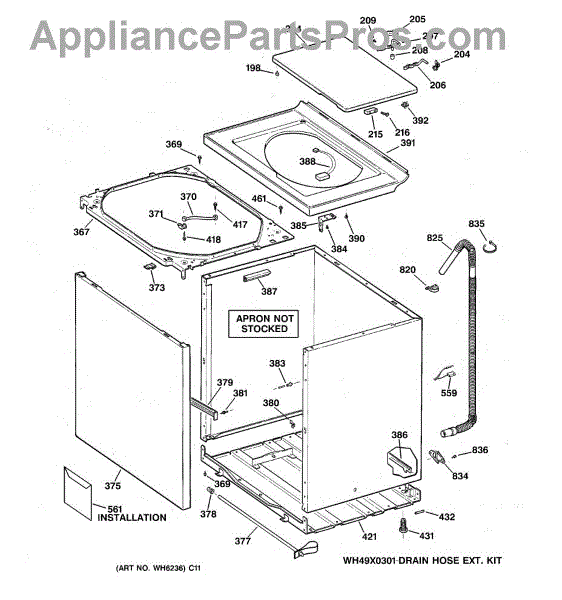 Note: For the entire drain hose, use part number WH41X10096.