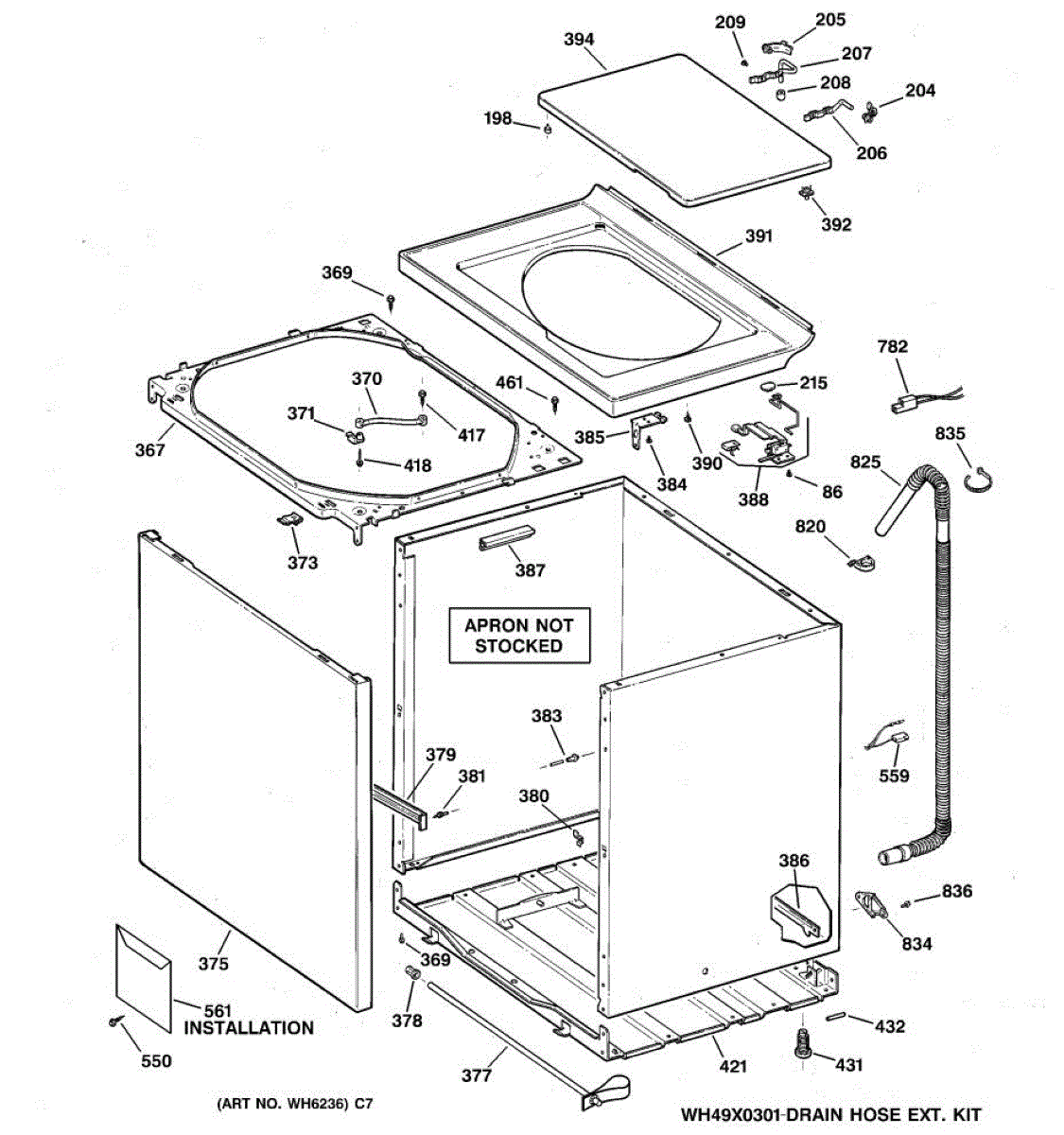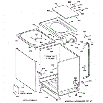 The Washer Top is an OEM part for GE washers. It is the upper panel that covers the internal components of the washing machine and provides a flat surface for loading and unloading laundry.