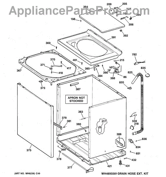 The Washer Top is an OEM part for GE washers. It is the upper panel that covers the internal components of the washing machine and provides a flat surface for loading and unloading laundry.
