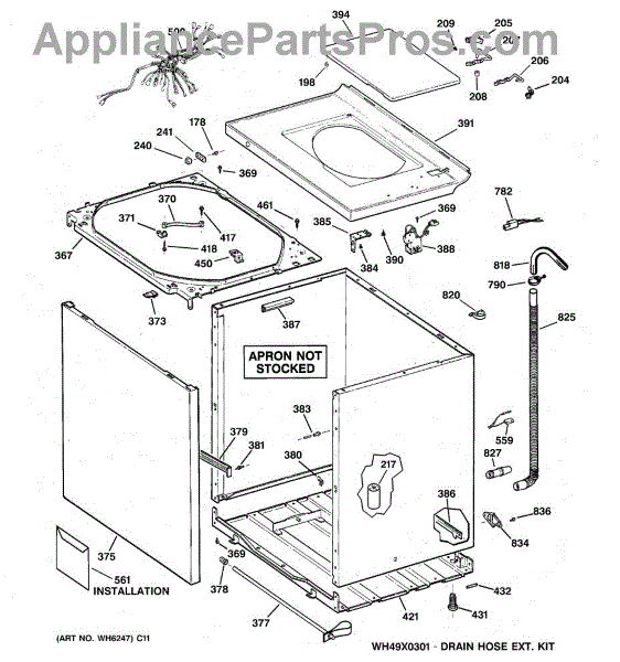 This GE replacement part is also compatible with Hotpoint, RCA, and some Kenmore models. Note: For the entire drain hose, use part number WH41X10096.