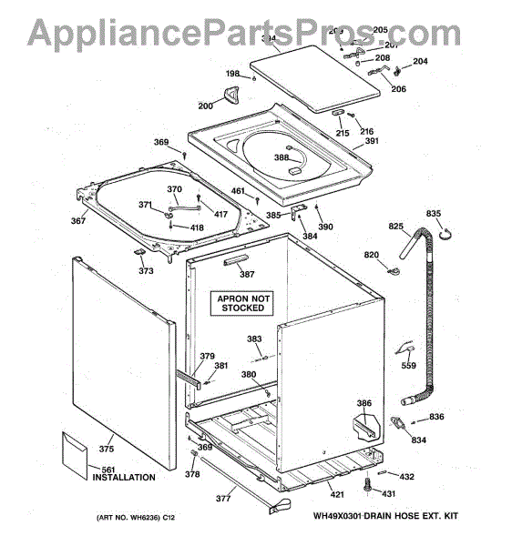 The Washer Top is an OEM part for GE washers. It is the upper panel that covers the internal components of the washing machine and provides a flat surface for loading and unloading laundry.