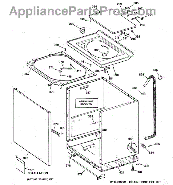 Note: For the entire drain hose, use part number WH41X10096.