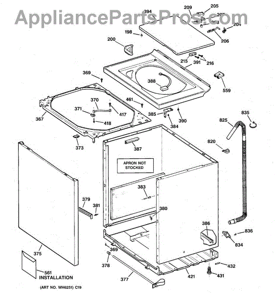 The Washer Top is an OEM part for GE washers. It is the upper panel that covers the internal components of the washing machine and provides a flat surface for loading and unloading laundry.
